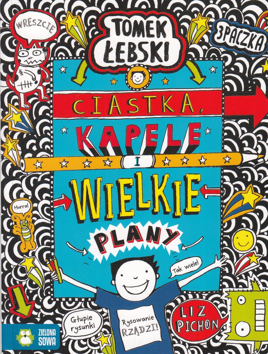 Tomek Łebski Mój wielki plan (na dziś) 1. Napisać więcej piosenek o bardzo ważnych rzeczach jak… ciastka. 2. Upewnić się, że mam wystarczający zapas przekąsek. 3. Unikać Danki za wszelką cenę. Uważa, że myszkowałem w jej pokoju! (A jak!). 4. Rysować najwięcej jak to możliwe, szczególnie wtedy, gdy Marek patrzy. Wielokrotnie nagradzana bestsellerowa seria Tomek Łebski to idealna propozycja dla każdego dziecka! Zabawne historie opowiedziane z perspektywy 11-letniego chłopca z pewnością zaciekawią niejednego młodego czytelnika. A niestandardowa forma - bogato zilustrowane strony z mnóstwem żartobliwych obrazków, ukazujących świat Tomka Łebskiego, oraz dodatkowe strony do samodzielnego kolorowania, zachęcą do sięgnięcia po książkę również mniej chętnych do czytania. Wystarczy otworzyć pierwszą stronę… Sprawdź sam! [opis wydawcy]